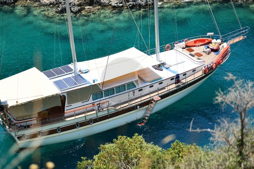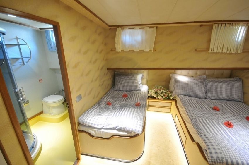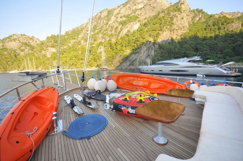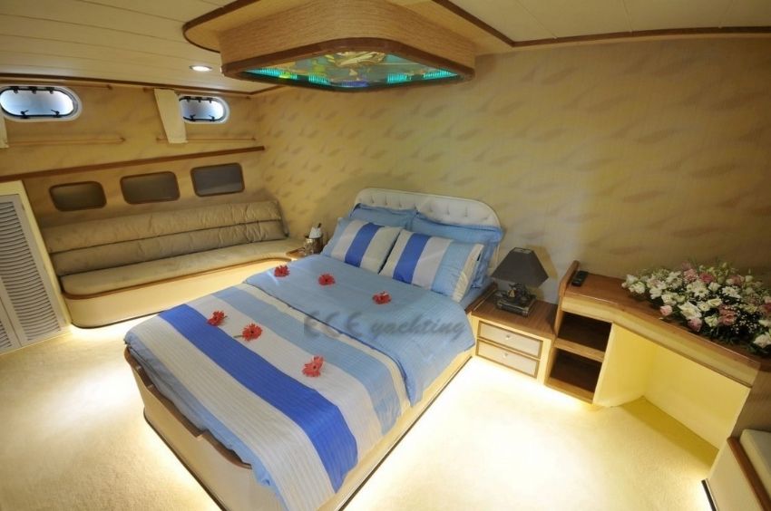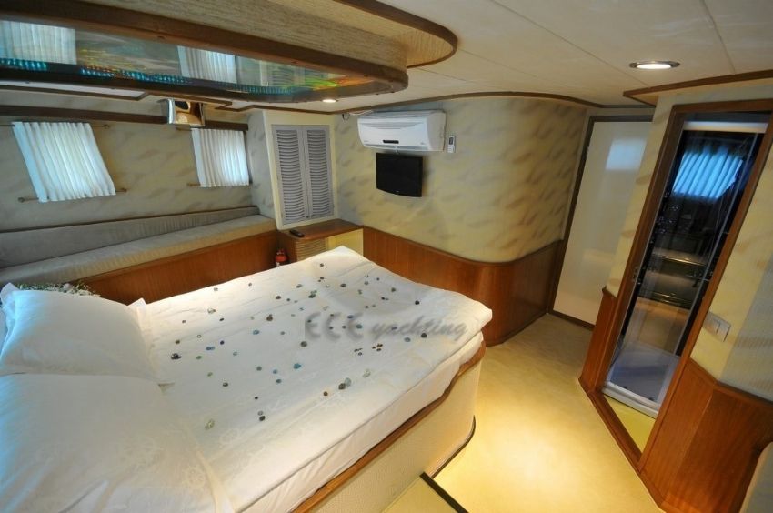 Ece Arina Teknesi2012 yılının mayıs ayında inşası başlayan ve 2013 mayıs ayında mavi yolculuk tutkunlarına hizmet vermeye başlayan 24 metre kech teknemizde 2 master, 1 duble ve 1 triple kabin ile gerektiğinde kullanılmak üzere diğerlerine göre ufak bir double kabin bulunmaktadır. |